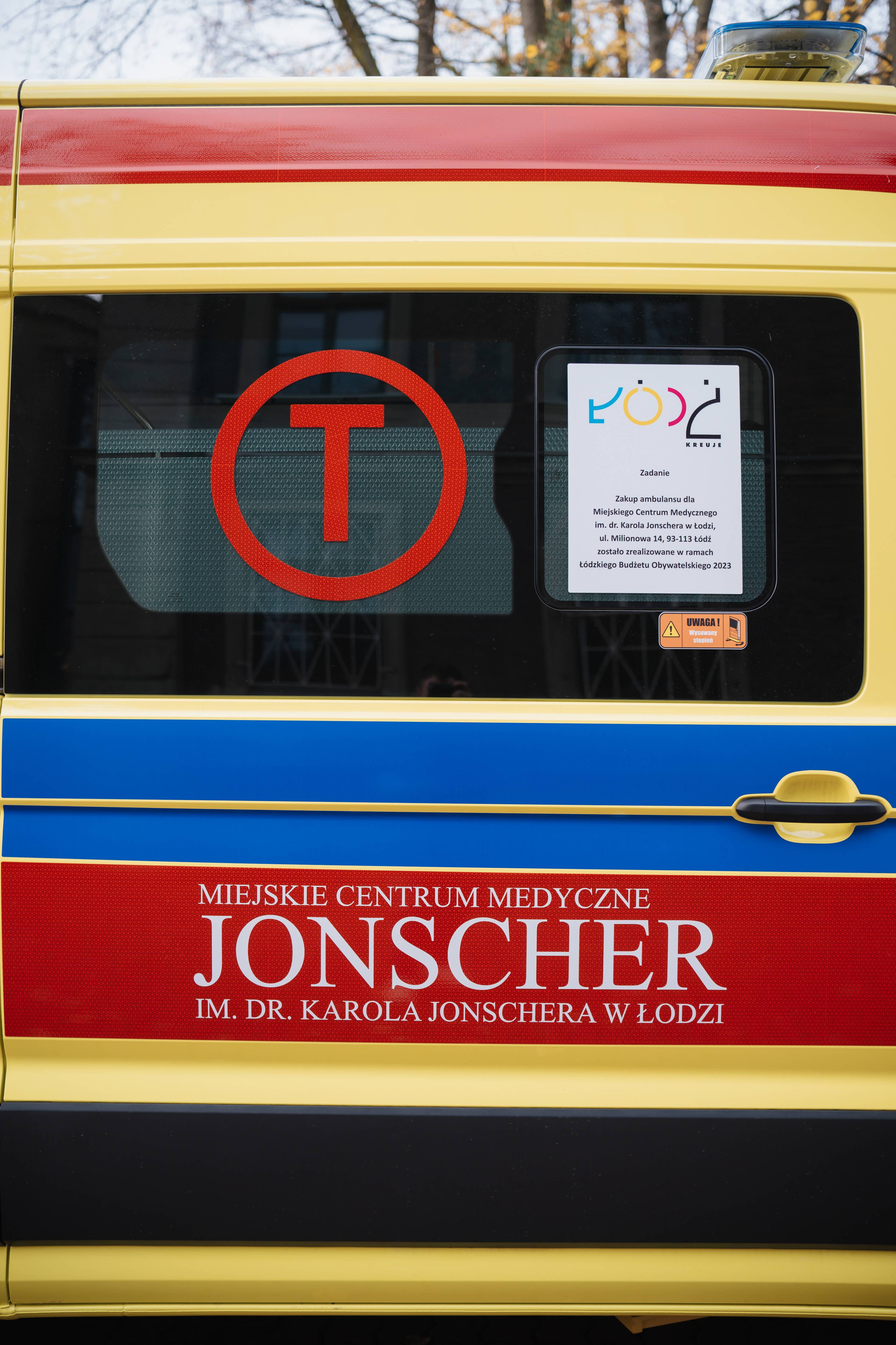 Ambulans typu B zakupiony dzięki głosom Łodzian z funduszu Budżetu Obywatelskiego przewozi pacjentów Miejskiego Centrum Medycznego im. dr. Karola Jonschera w Łodzi.