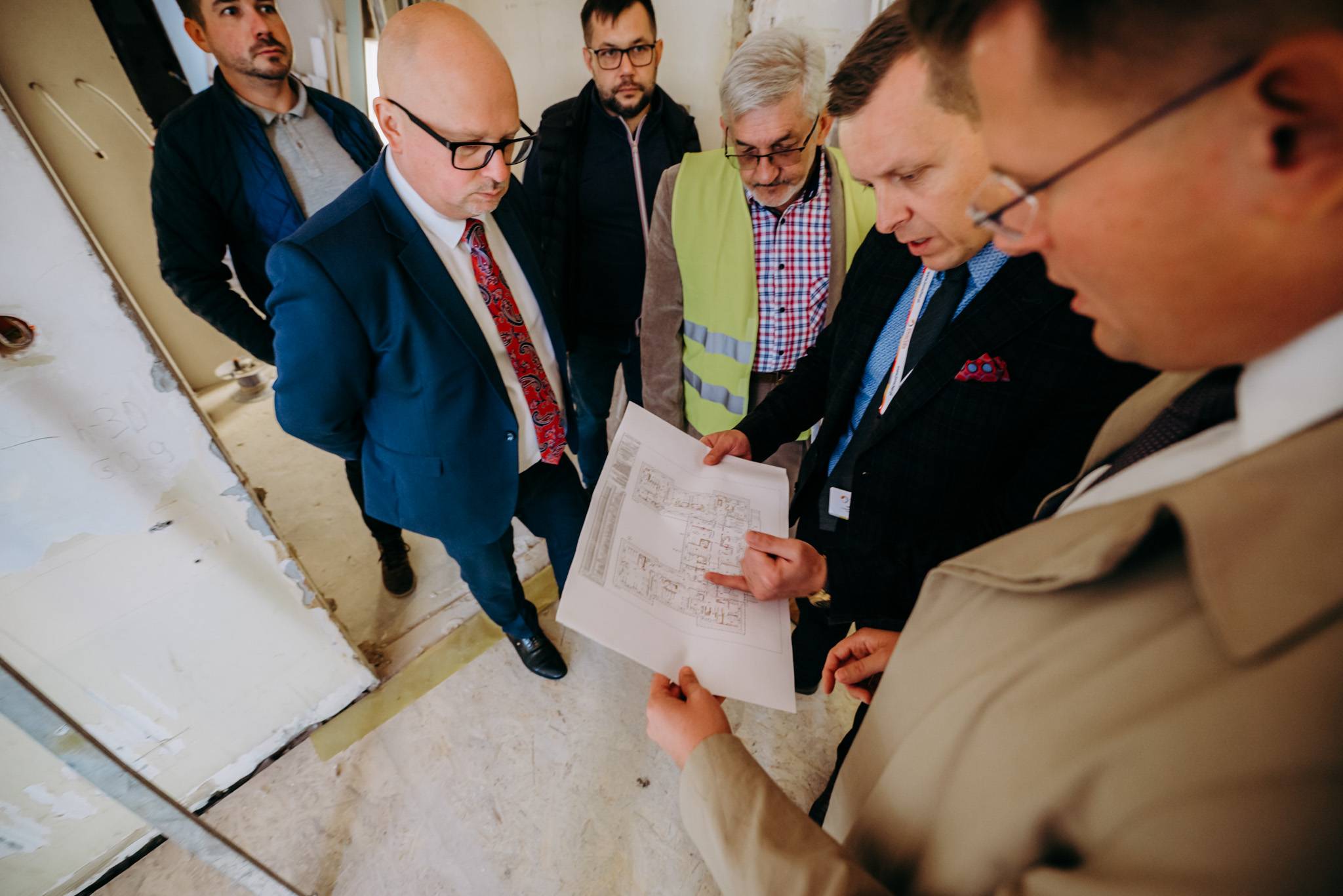 Prace prowadzone w skrzydle północnym obserwował Adam Wieczorek, wiceprezydent Łodzi wraz z Zarządem Miejskiego Centrum Medycznego im. dr. K. Jonschera w Łodzi.