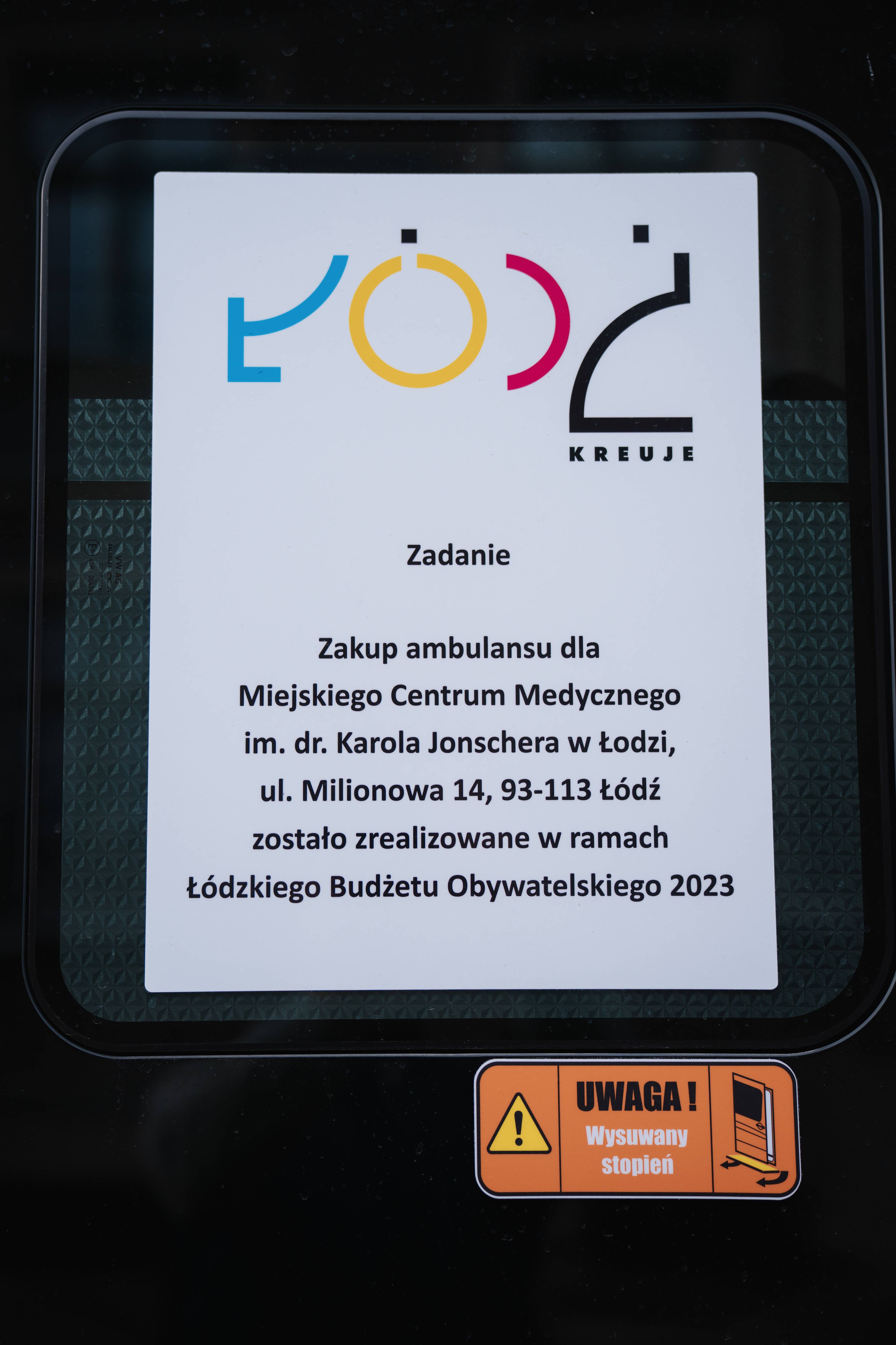 Ambulans typu B zakupiony dzięki głosom Łodzian z funduszu Budżetu Obywatelskiego przewozi pacjentów Miejskiego Centrum Medycznego im. dr. Karola Jonschera w Łodzi.